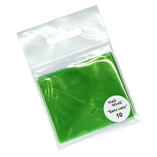 NAILS WORLD Фольга Бите скло, 10 Bright Green 5х50см